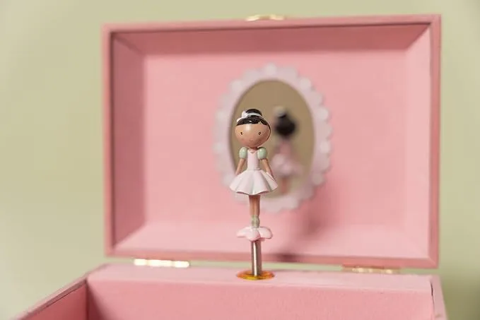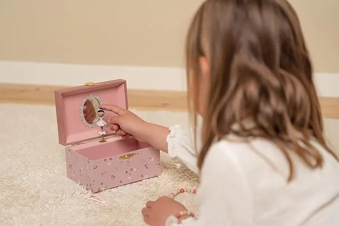 Dieses liebevoll gestaltete Kästchen bietet nicht nur Platz für all die funkelnden Schätze deines Kindes, sondern begeistert auch mit einer tanzenden Ballerina, die sich zu einer zauberhaften Melodie dreht.